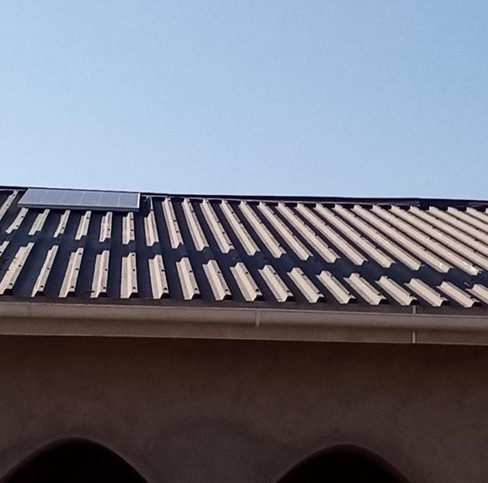 Electricity was installed using a 330W solar panel regulated by a 3kVA inverter and 200Ah Gel battery. This is able to power multiple lights in both sections of the Masjid, wudhu areas and veranda/lobby sections as well the internal power points.